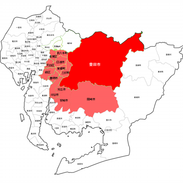 営業エリア豊田市・みよし市・東郷町・日進市・長久手市・知立市・刈谷市・安城市・岡崎市・名古屋市(東部)
